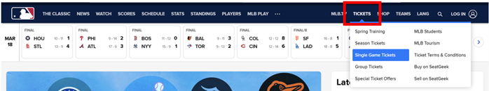 ・TICKET → Single Game Ticketを選択