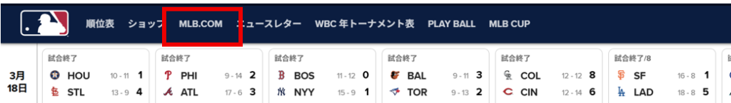 ・MLB日本サイト から MLB.COM(米国)サイトに