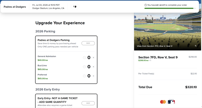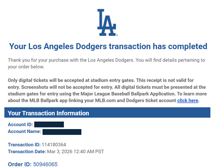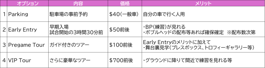 MLB公式以外の2つは転売プラットフォームですが、公認ですので、万が一購入したチケットが偽物だったというような場合でも、MLBが保証してくれるそうなので、偽物かも・・? という心配はしなくてよいでしょう。