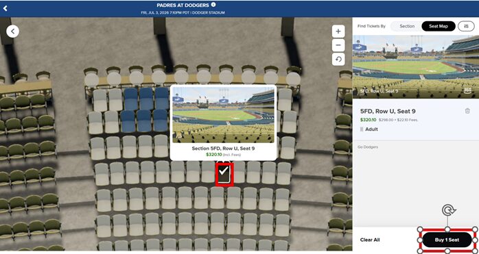 ・空いてる座席(枚数、横並び等)を指定、→ Buy Seat