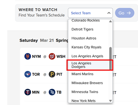 ・先にチームを選ぶのがよいでしょう。 ドジャース、 Go →