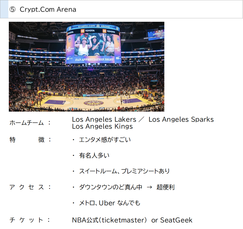 - NBA → 盛り上がりとエンタメ感すごそう、Crypt.com.Arenaのアクセス◎