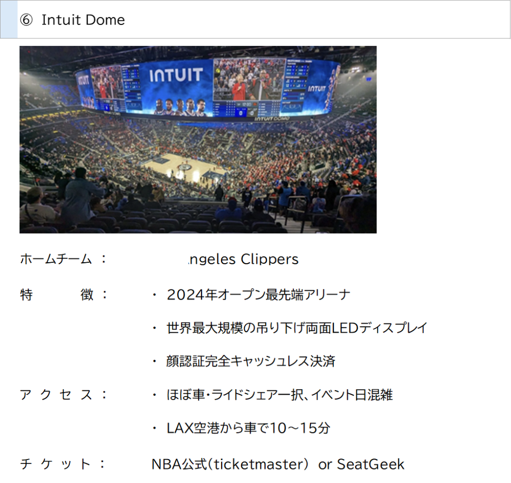 せっかくLAにMLB観に行くなら他のスポーツの観戦もしてみたいな。と、思いシーズン、スタジアム、アクセス、チケットの取り方、、、などを調べて比較してみました。